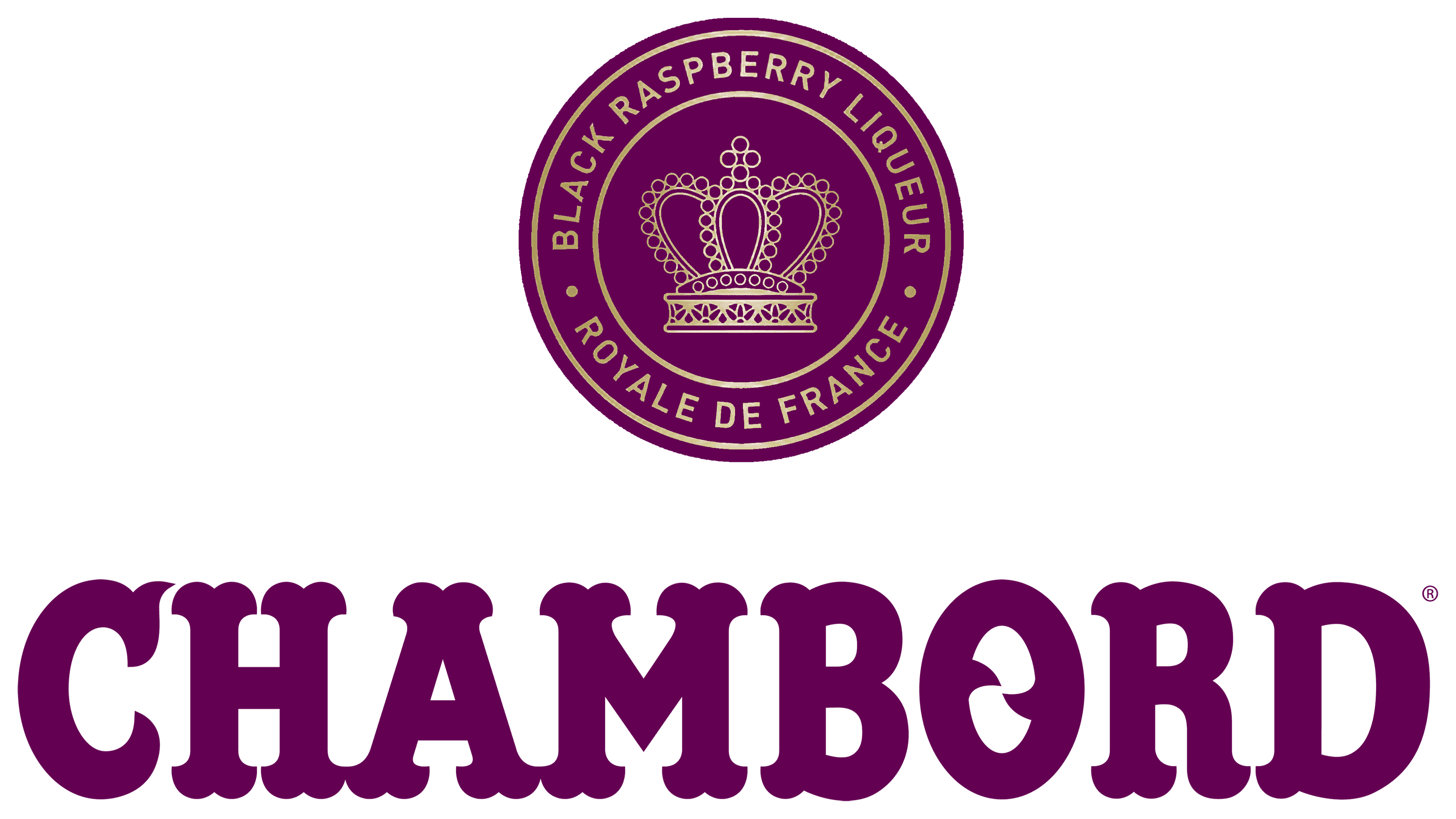 Chambord Logo: The Chambord logo features elegant, regal typography paired with an image of the French raspberry liqueur bottle. It symbolizes luxury, indulgence, and the rich, fruity heritage of this premium liqueur.