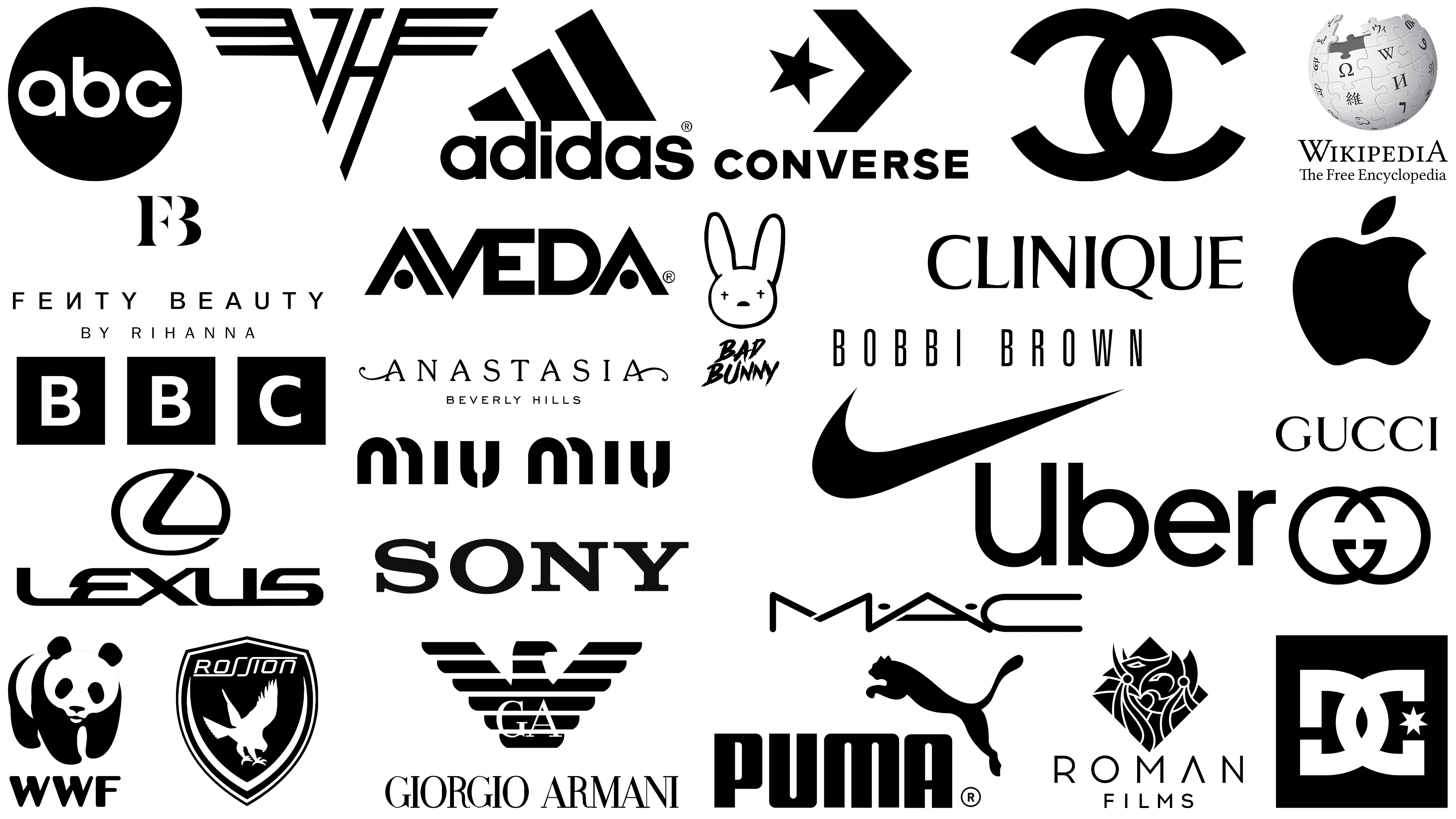 The above image is a visual representation of the Famous black and white logos.