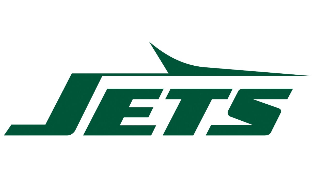 New York Jets Sign: The New York Jets logo features a bold green and white color scheme, with an oval shape that includes a stylized jet, representing the teams speed, power, and competitive spirit in NFL football.